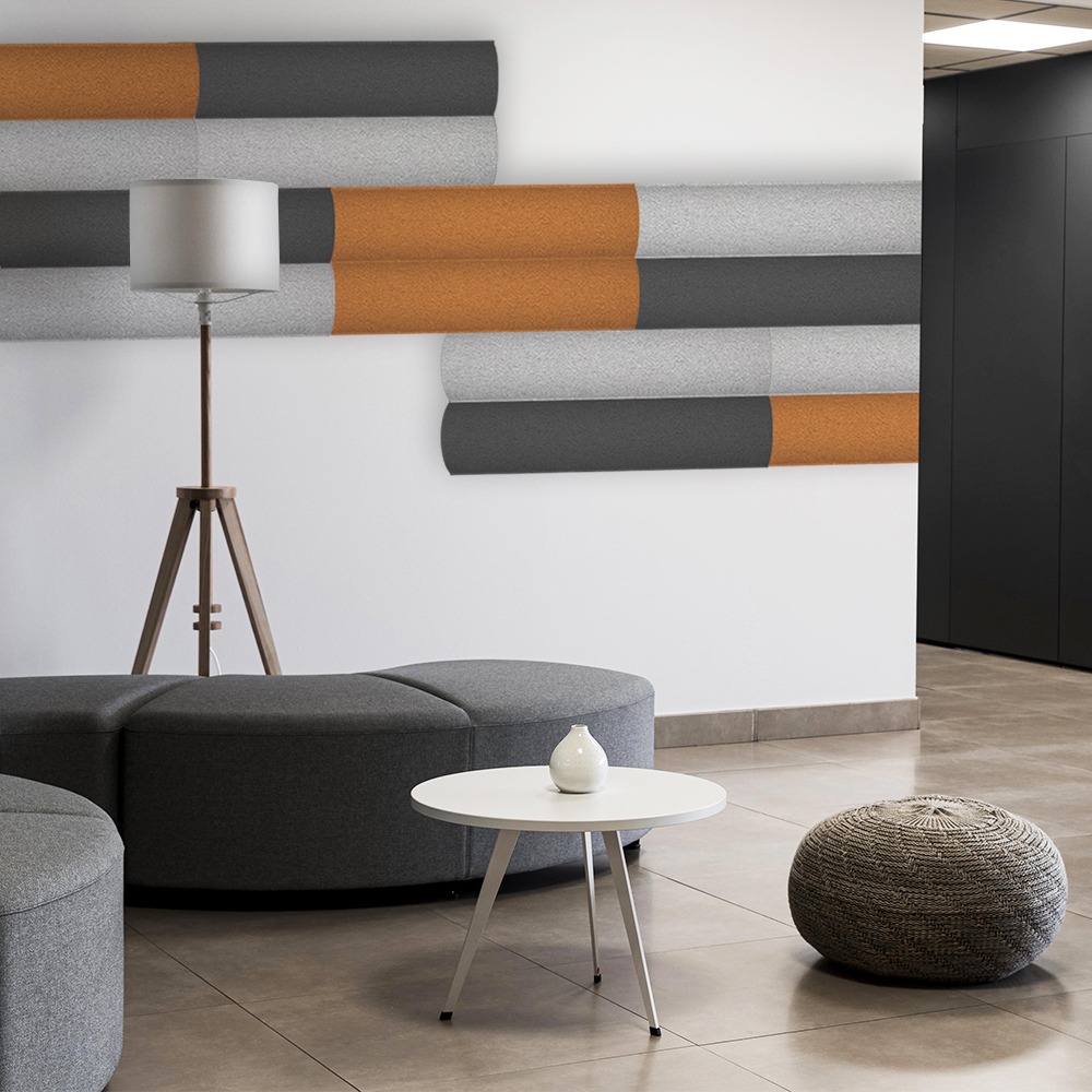 SOUND ABSORBING: self-extinguishing polyurethane foam, density 30 kg/m3, fire reaction UL94-HF1, thickness 5 cm, finish with colored paint.